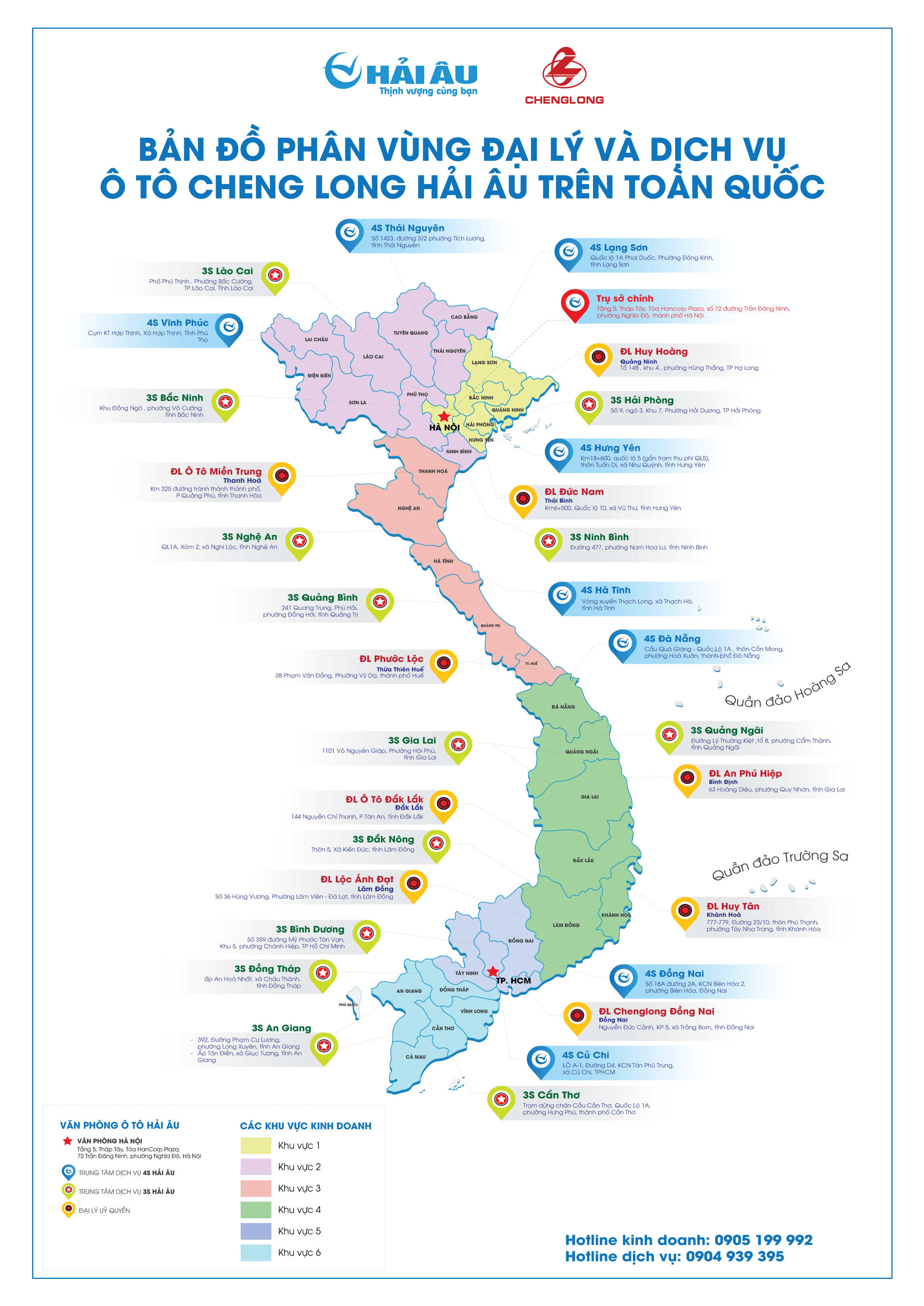 DANH SÁCH CÁC TRUNG TÂM DỊCH VỤ Ô TÔ HẢI ÂU