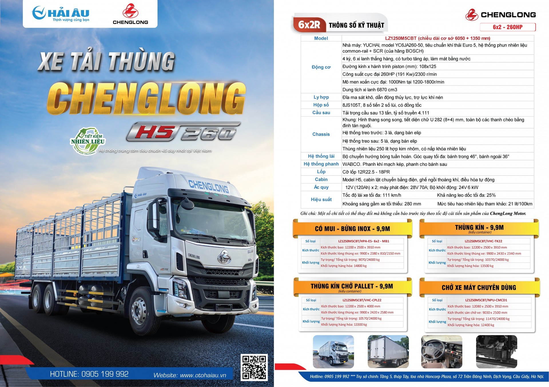 THÔNG SỐ KỸ THUẬT XE TẢI THÙNG CHENGLONG H5 6x2R 260HP – THÙNG DÀI | |